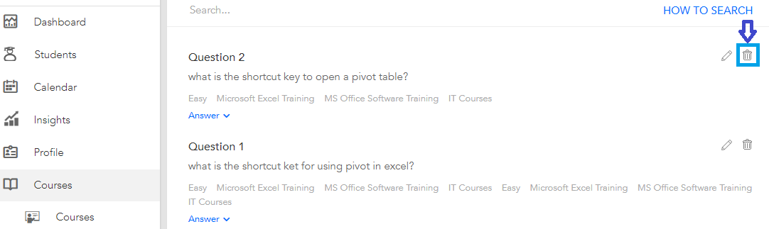 You can also remove any of the questions you have added in an assessment by clicking the ‘Remove’ button.