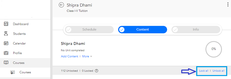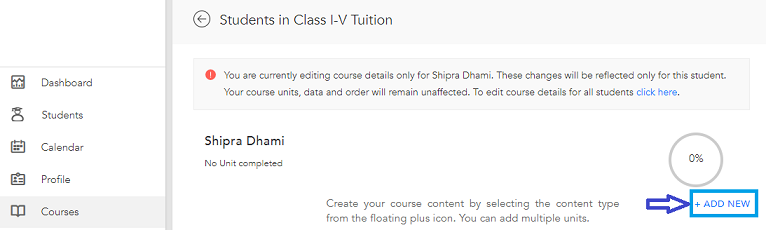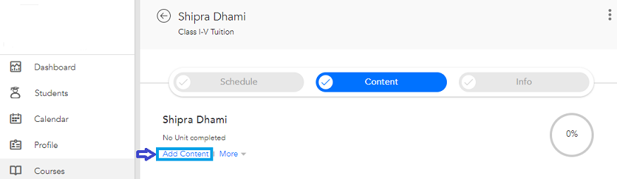 Advanced: Whenever the first student is added to any class you teach, our system creates a course, which is available under the courses section. Hence this content will also be available under the courses section and course content of that.