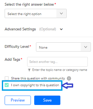 Currently, if you add a question in the Question Bank, the system automatically ticks the checkbox - ‘I own copyright to this question’. So, kindly avoid adding new questions which are not originally created by you.