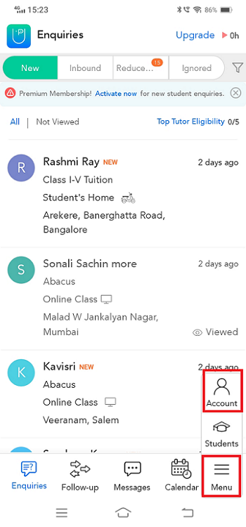 Step 2: Click on the 'Menu & Account' option on the bottom right corner of the screen