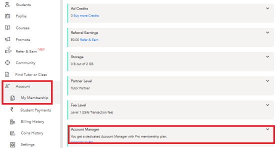Click on My Membership or visit the link https://www.urbanpro.com/register/myMembership